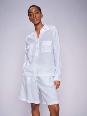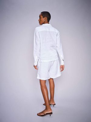 Stay cool on warm spring days with these pure linen shorts. Designed in a relaxed, mid-rise fit, they feature an elasticated waistband and side pockets. Pair them with a linen shirt or a feminine blouse for an effortlessly breezy look.