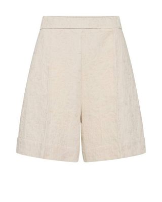 Elevate your summer style with these jacquard woven shorts, designed in a classic regular fit with a versatile mid-rise waist. The smooth front creates a sleek, polished appearance, while the elasticated back ensures a comfortable and flexible fit. Finished with practical welt pockets at the back and essential side pockets, these shorts combine functionality with sophisticated design. For a fashion-forward ensemble, pair them with the coordinating jacket to create a chic and trendy look that’s sure to turn heads.