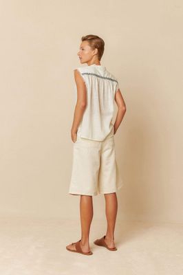 The Lore shirt is that special garment you're looking for. It has geometric motifs embroidered in cross stitch and a relaxed fit for a natural, comfortable look.