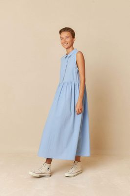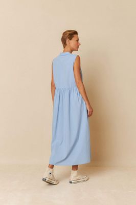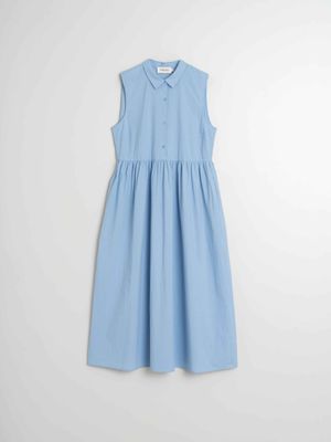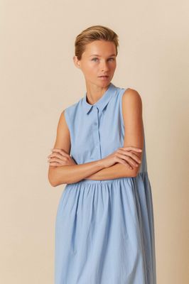 This shirt dress is made of organic cotton poplin, with a fitted shoulder and half-placket buttoned closure. It has a relaxed fit to ensure comfort.
