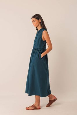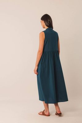 This shirt dress is made of organic cotton poplin, with a fitted shoulder and half-placket buttoned closure. It has a relaxed fit to ensure comfort.