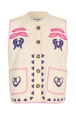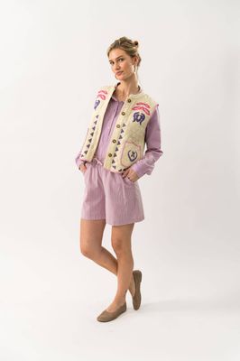 The Cairo LL vest blends Lollys’ signature style with a modern boho twist. It’s quilted and adorned with lilac and pink embroidery details on both front and back – a colourful and feminine addition to your wardrobe. Wear it over a dress, a shirt, or as a statement piece on a simple tee.