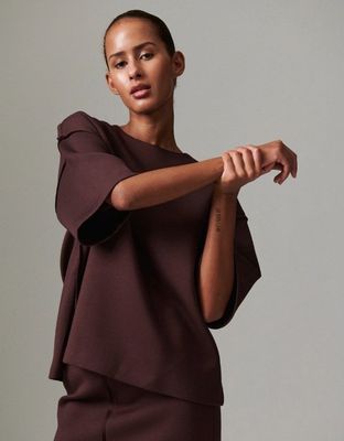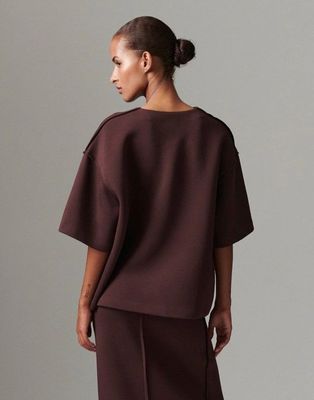 This scuba-textured T-shirt features raised seams and a rounded neckline. The T-shirt has a loose fit.