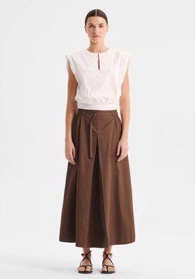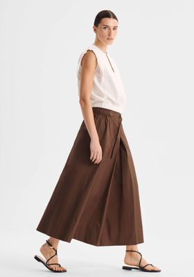 Crafted from soft cotton poplin, the Brooks Skirt combines comfort and polish. The elasticised waistband and adjustable self-tie belt offer a flexible fit, while side seam pockets and a midi length silhouette lend relaxed sophistication to any look.