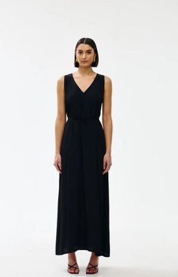 The sleeveless design features a soft V-neckline and a relaxed straight cut silhouette that skims the body without clinging. The fine detachable belt allows you to cinch the waist to create gentle shape.