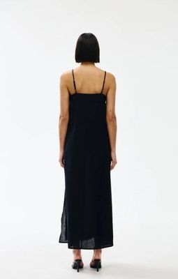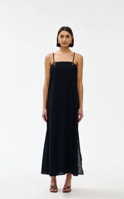The Cali Dress in Black is a timeless addition to your wardrobe. Designed in a relaxed, A-line silhouette, it features a flattering straight neckline, adjustable straps, and subtle side splits for ease of movement.