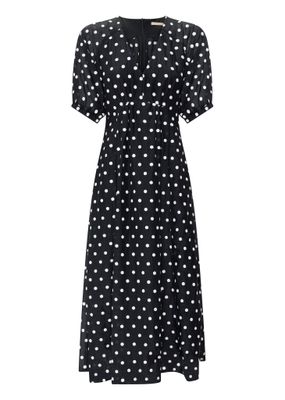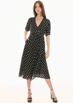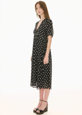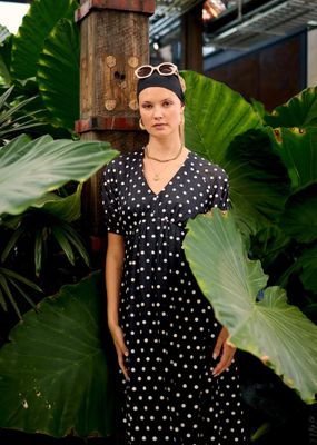 Made from a lightweight cotton voile with embroidered polkadots, the Clove Embroidered Dress is a modern take on vintage style. V neckline. Invisible zip closure through the centre back. Raglan style, elbow length sleeves with gathered elastic cuff. Designed to have a drapey fit through the bodice. Gathers under the bust. Tapers in at the waist - elastic panel at the back for a comfortable fit. Hip pockets. Soft gathered skirt. Slightly sheer composition with front of bust and skirt lined in cotton voile.