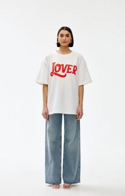 The Lover Tee White is a classic oversized fit tee, made from quality cotton. Designed with a relaxed, boxy silhouette, featuring subtle distressed detailing along the neckline, sleeves and hem and bold Lover printed in vibrant red.