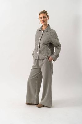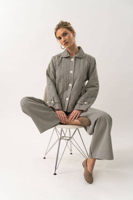 The Liam pants in black and white stripes offer a sophisticated yet comfortable look with their wide-leg cut and relaxed fit. Pair them with the Cairo vest for a perfectly coordinated set.