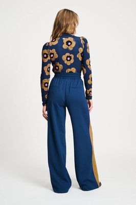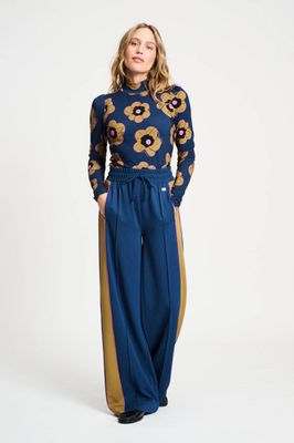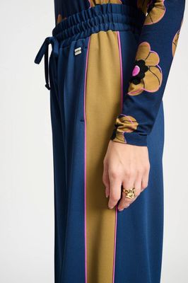 Easy fit, bold edge. These pants stand out with their relaxed fit and striking color combination. Comfortable enough for your daily routine and stylish enough for a night out.• Dark blue/Mustard yellow/Fuchsia • Long pants • Wide leg • Elastic waistband with tie • Inseam 82 cm • More sustainable