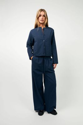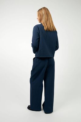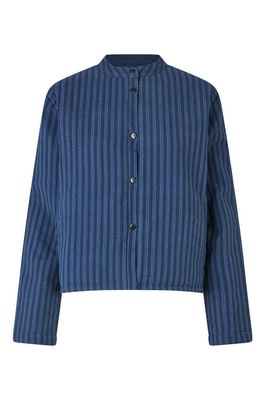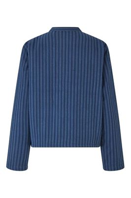 textured fabric with tone-on-tone stripes and buttons that add a cool and