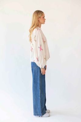 The Hailey shirt is a feminine and colorful style with delicate details. It’s