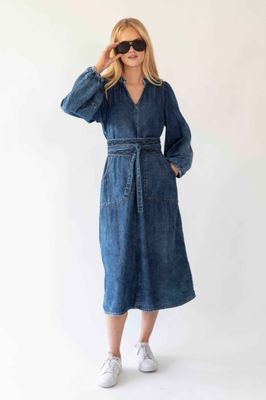Paris is a timeless and feminine dress in dark denim with delicate details. It