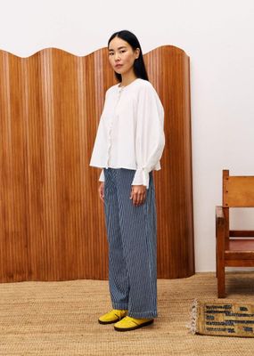 DESCRIPTION• White shirt• Exclusive FRNCH Fabric• Long buttoned balloon sleeves• Ruffled buttonhole• Round neck
