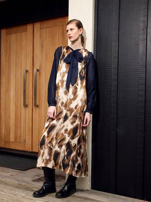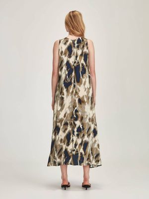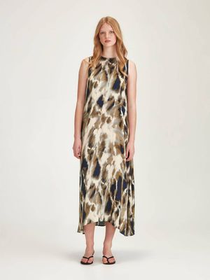 The limited-edition Amore Print is reminiscent of the pattern of garden stones found in Japanese temples. It's been crafted in a sustainably sourced viscose satin. The Dakota provides a relaxed look with its fit & flare shape and sleeveless style.