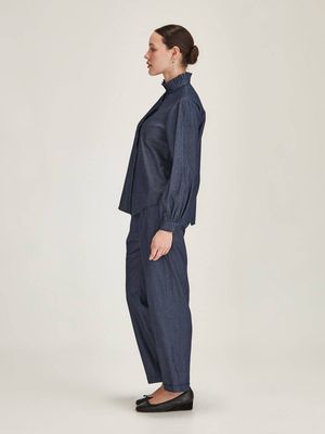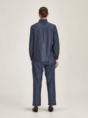 Part of our Winter Chambray collection, the Mira Blouse offers a tailored look with its high ruffle collar and placket detailing.
