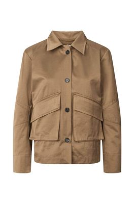 Detailed with a button down front and large front pockets, the jacket adds a hint of rock ānā roll to any look. The design is defined by a flattering silhouette with collar and long sleeves.