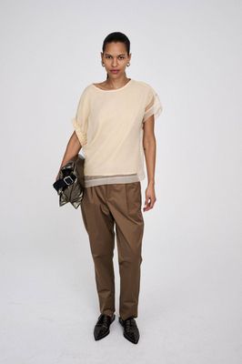 Beautiful top from Rabens Saloner with a fine transparent mesh outer layer. The Gerta top has a loose fit, is sleeveless and has a cool detail, with wide elastic at one shoulder.