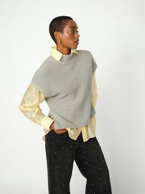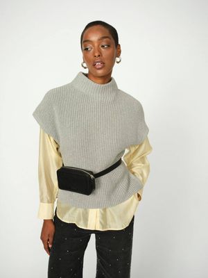 This stylish knit vest is crafted in a fitted silhouette, creating a refined and contemporary look. The high neck enhances its elegant appeal, making it a perfect layering piece or a statement on its own. Wear it over a crisp shirt or with tailored pants for an effortlessly polished outfit.