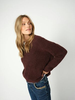 Spun from a soft blend of alpaca and responsible wool, this relaxed knit offers both warmth and effortless elegance. Designed with a flattering V-neckline and long sleeves, it drapes beautifully on the body. Wear it with jeans for a cozy everyday look or style with tailored pants for refined comfort.
