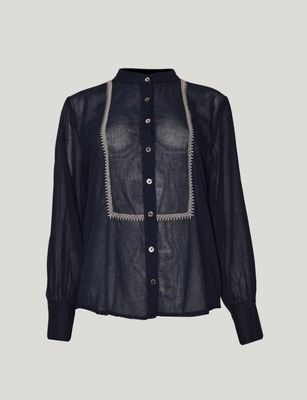 An injection of light-weight shirting, ideal for layering, all crafted in an organic cotton voile. The Mihara is a classic shirt shape with embroidery detail.