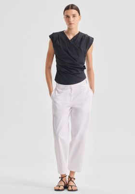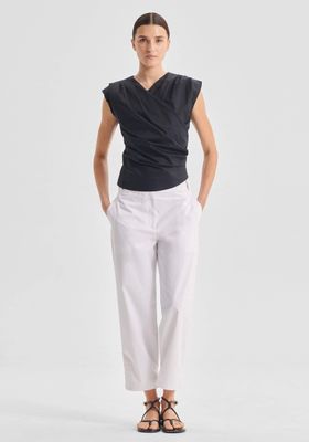 Made from breathable cotton poplin, the Felix Top features a wrap-style front with adjustable tie closure. Delicate tucks through the shoulders and waist enhance the shape for a refined, feminine finish.