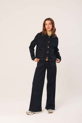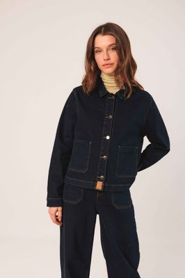 This denim jacket can be combined with all your looks. It has a metallic button closure and front patch pockets. Made of cotton fabric with a bit of elastane to make it more comfortable.