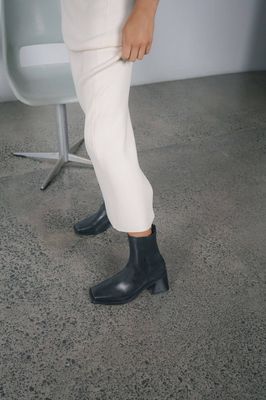A cult favourite; meet Marilyn. Defined by a sharp square toe and timeless side seam detailing, Marilyn is a must-have winter staple. The elongated leg shaft with stretch leather offers a fresh take on a minimalist silhouette while ensuring a close, flattering fit.