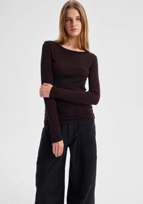 Morrison Merino Stripe Round Neck - Espresso/Black