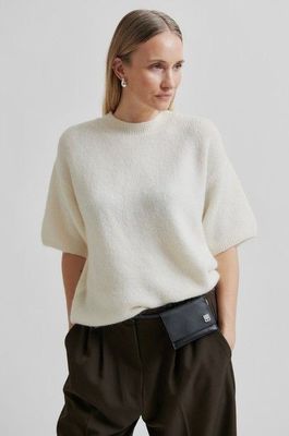 Product description Second Female short-sleeved pullover. The pullover is made in a soft and stretchy alpaca blend. Featuring ribbed trim at neck, sleeve ends and bottom hem. Wide and relaxed fit.