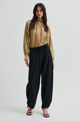 The Second Female Blink Cargo Trouser in Black is a modern tailored pant designed for effortless style and comfort. Crafted from a drapey viscose blend, the Second Female Blink Cargo Trouser features a mid waist fit with a relaxed, baggy leg silhouette that creates a contemporary, easy shape. Designed with practical front and back pockets, a concealed zip, hook and button fastening for a polished finish, and a tie belt at the waist for an adjustable fit. Ankle drawstrings with ties add versatility and a subtle utilitarian edge, making these trousers perfect for refined everyday dressing with a modern twist.