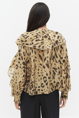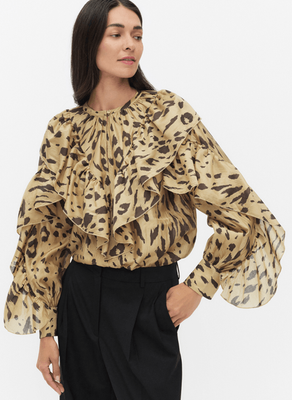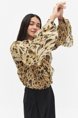 Second Female printed blouse. The blouse is made in semi-sheer fabric with all-over print. Featuring a keyhole opening and button fastening at the front. Diagonal frills at the front and sleeves. Long sleeves with buttoned cuffs. Relaxed, airy fit.