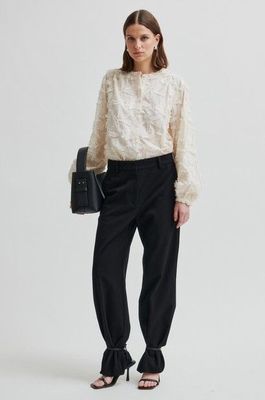 Shirt from Second Female in a light cream shade with a floral pattern. The shirt has decorative details such as embroidery and ruffles.