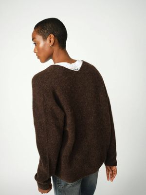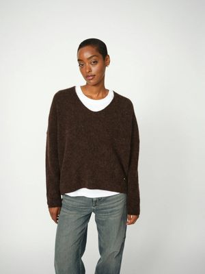 Spun from a soft blend of alpaca and responsible wool, this relaxed knit offers both warmth and effortless elegance. Designed with a flattering V-neckline and long sleeves, it drapes beautifully on the body. Wear it with jeans for a cozy everyday look or style with tailored pants for refined comfort.