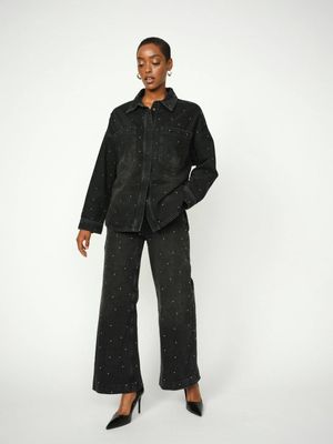 These statement jeans are designed to add a touch of glamour to any outfit. Cut in a flattering high-rise with a trendy wide-leg fit, they are adorned with chic stud embellishments for an elevated look. Style them with a sleek blouse or a cosy knit to effortlessly balance edgy and sophisticated vibes.
