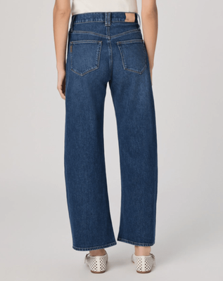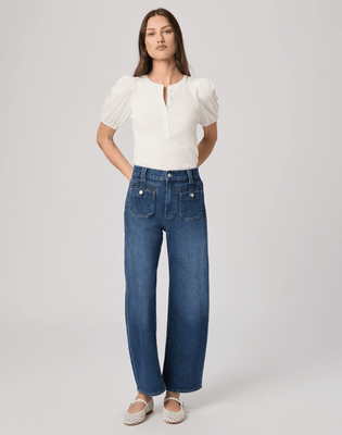 The Arellia Ankle is our high-rise barrel-leg silhouette with a cropped, ankle-length inseam. Crafted from heritage-inspired denim in a dark vintage wash, it offers a soft hand-feel with a hint of stretch and is finished with welt tab patch pockets for an elevated everyday denim look.
