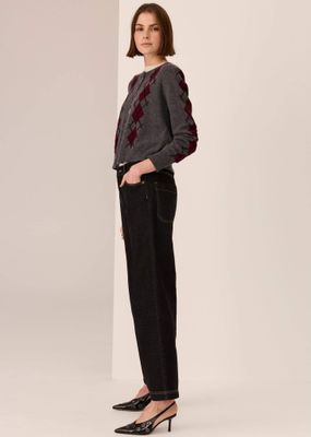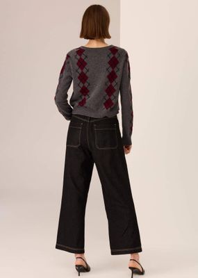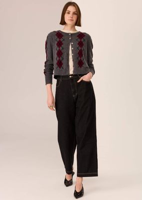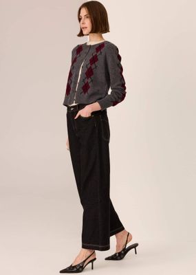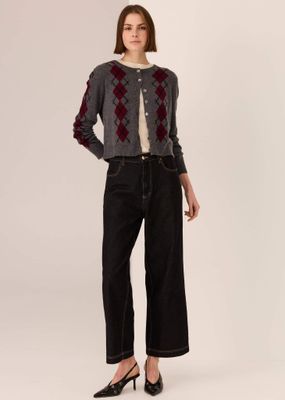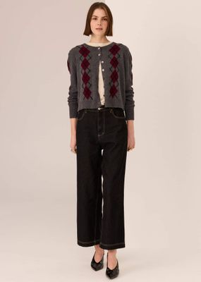Pol Loren Argyle Cardigan - Charcoal/Merlot