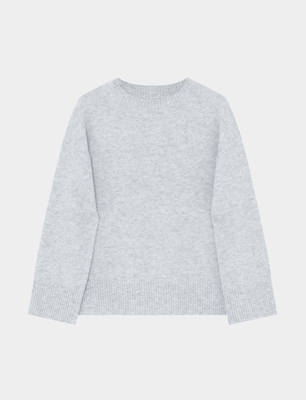 This stretchy knitted jumper features ribbing at the neck, hem, and wrists. The jumper has a loose fit.