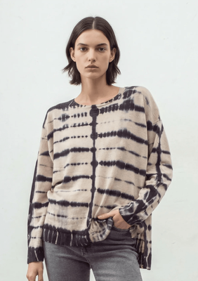 Our classic oversized slouchy crew is crafted from a soft blend of Merino wool and sustainably sourced Cashmere. Designed with a hi-lo hem and finished in our exclusive tie-dye design for a bold yet effortless look.
